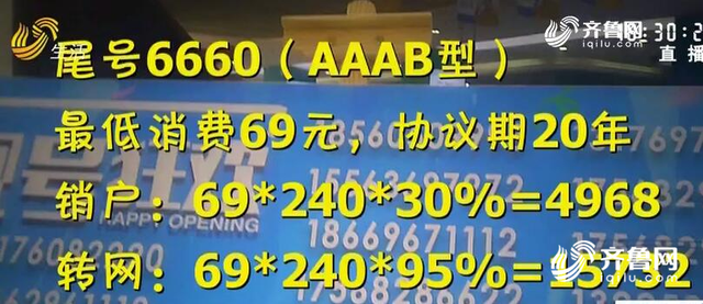 工作人员介绍,现在想要办理这类靓号开户除了需要保证相应的最低消费,还需要签订一份协议期为20年的靓号协议。签订了靓号协议后,也可以办理携号转网,但是有违约金。